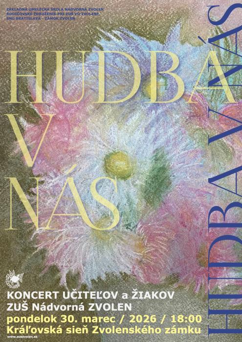 Pozývame Vás na koncert učiteľov a žiakov, pripravený pri príležitosti sviatku Dňa učiteľov. Koncert sa bude konať v Kráľovskej sieni Zvolenského zámku v pondelok 30.3.2026 o 18-tej hodine.