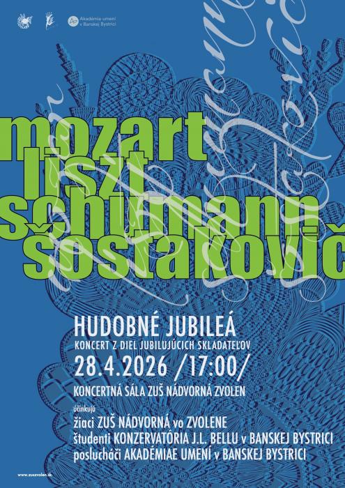 Pozývame Vás na koncert z diel skladateľov, ktorých výročie narodenia alebo úmrtia si pripomíname v roku 2026. Na koncerte odznejú diela W. A. Mozarta, R. Schumanna, F. Liszta a D. Šostakoviča.