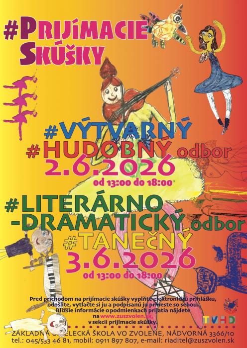 Základná umelecká škola organizuje prijímacie skúšky na školský rok 2026-27.
